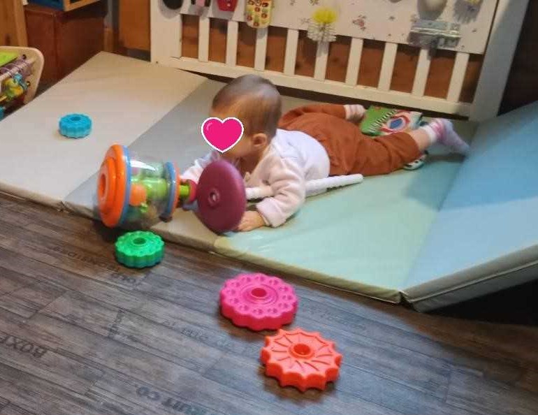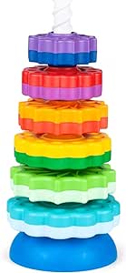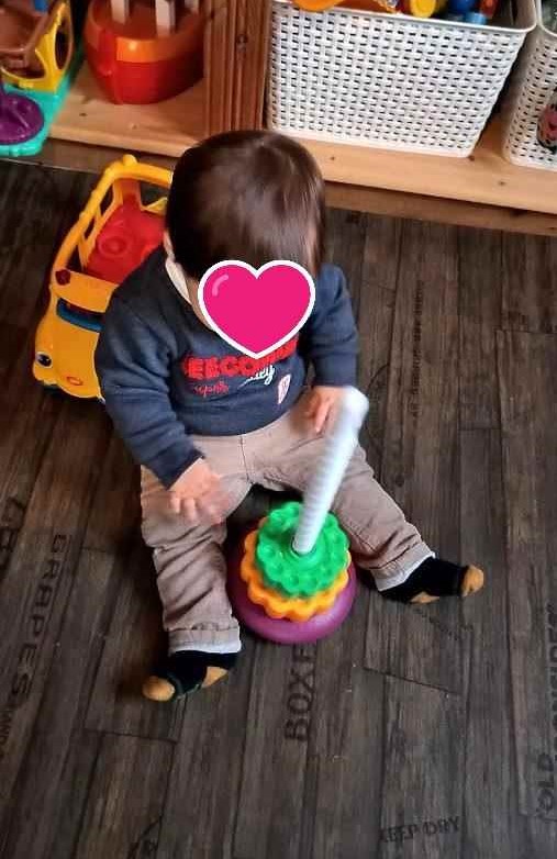 Alma et Lucas n’ont pas mis longtemps à s’amuser avec. Ce jouet favorise la coordination oeil et main (idéal pour la motricité fine) mais surtout il plait aux enfants. Ce n’est pas un abaque ordinaire , les blocs s’empilent en tournant autour d’un bâton spirale…