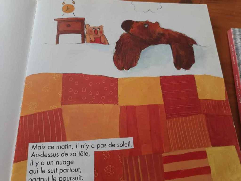 - Le petit souci d’Anne Herbauts : un coup de cœur !! un ours qui se réveille avec un souci matérialisé sous forme d’un nuage ..il décrit sa journée …