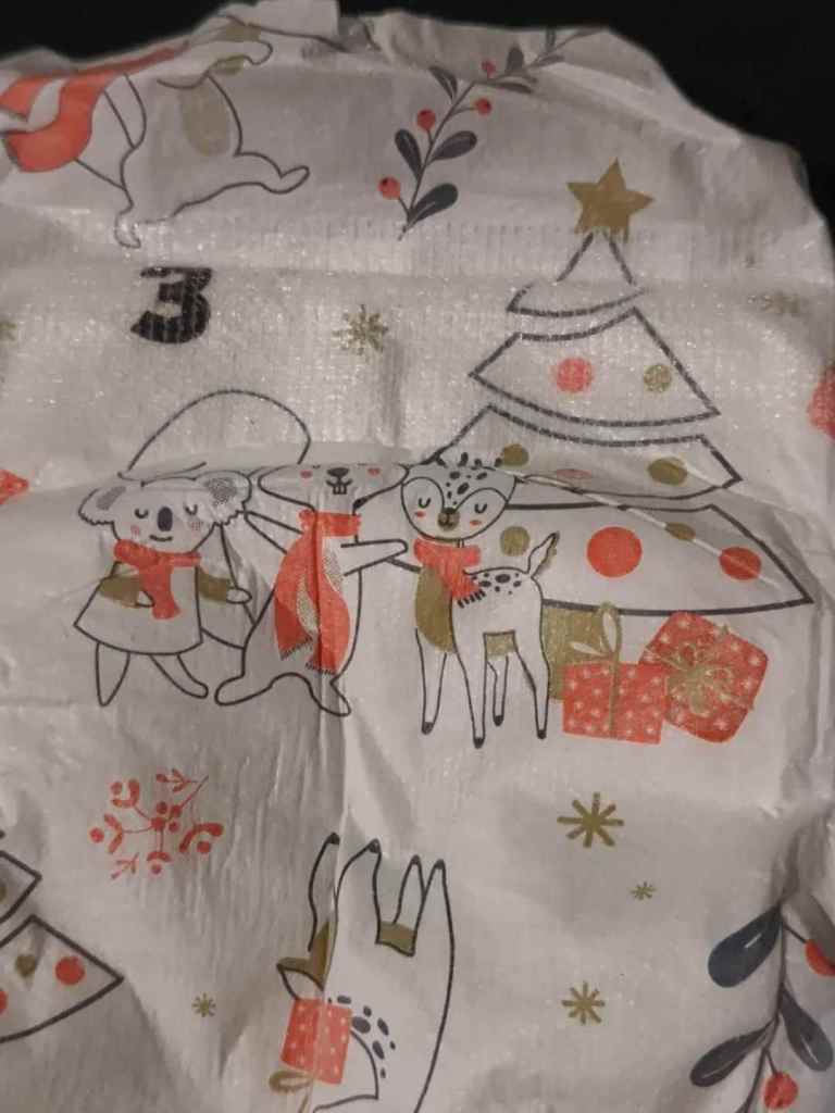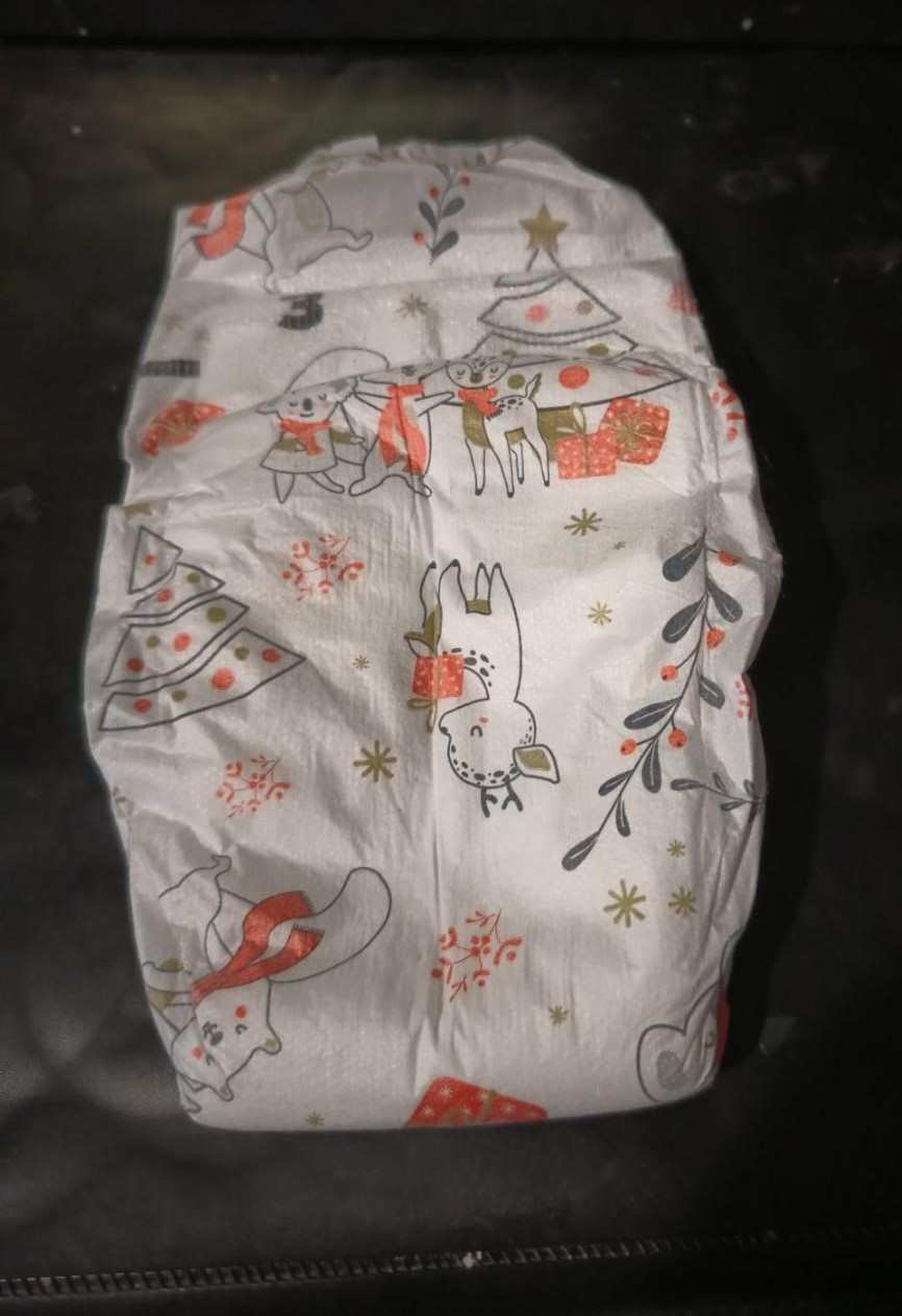 Ce matin dans le sac d’Alma, une drôle de surprise : des couches de Noël !!