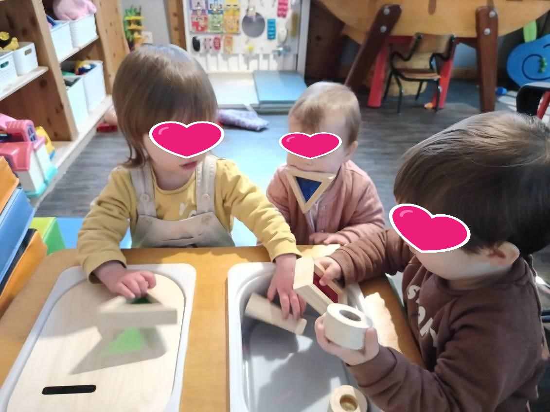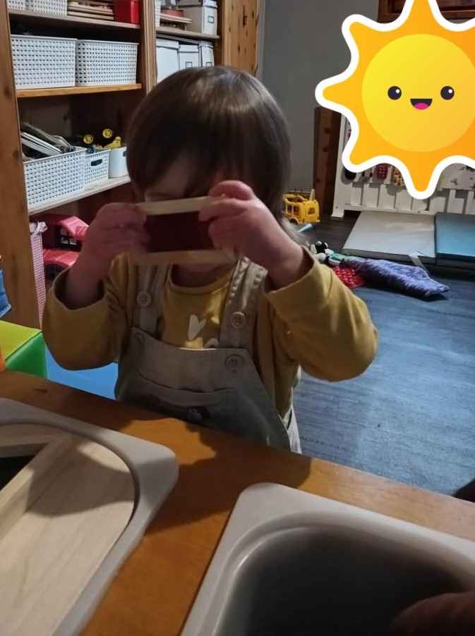 J’ai mis à disposition des blocs en bois « rainbow » pour les enfants. Un peu timides, ils se sont pris au jeu. Chacun a pu voir le monde à travers les couleurs. c’est amusant de voir Elisa faire comme Alma et Lucas .