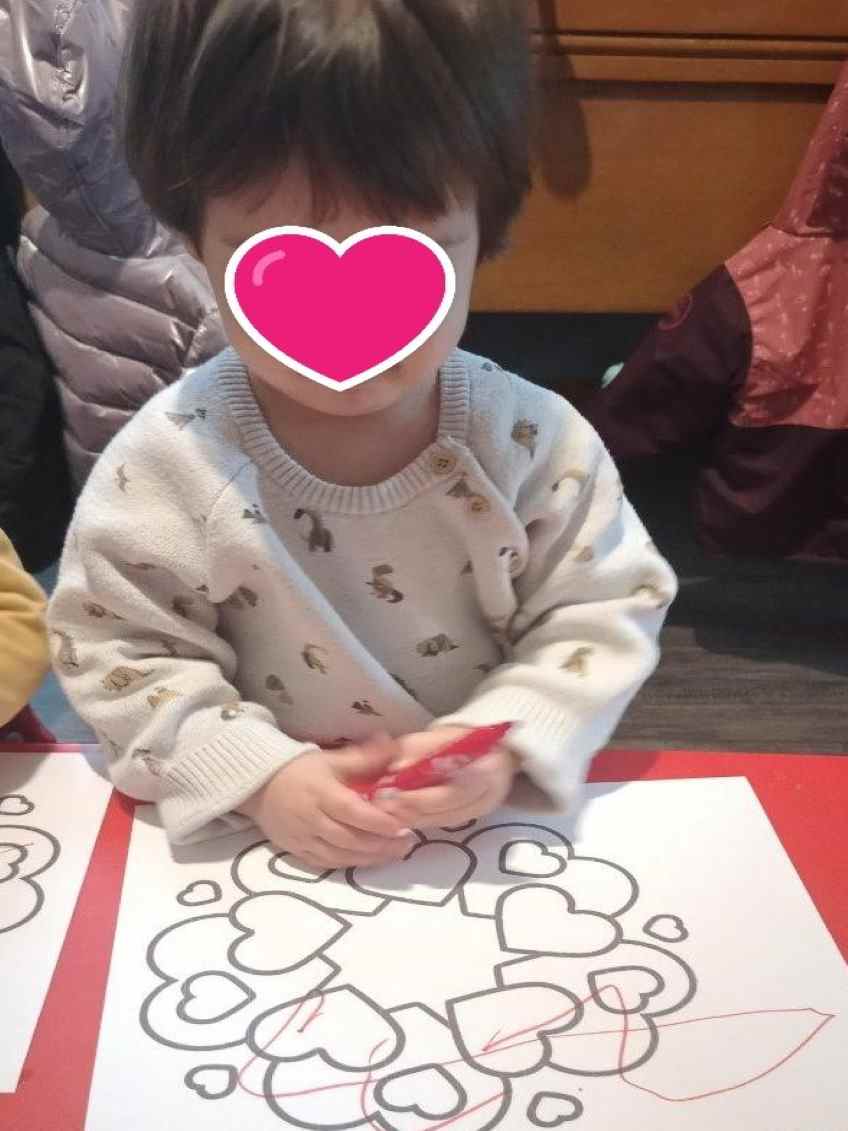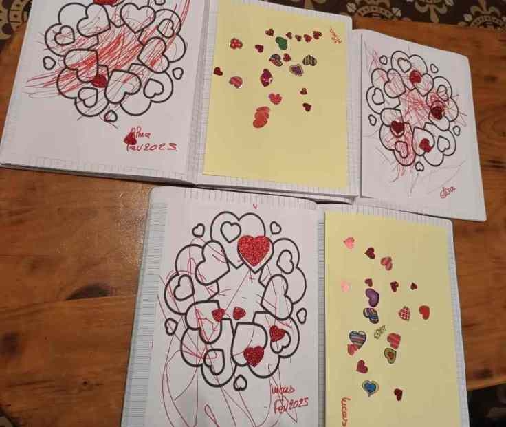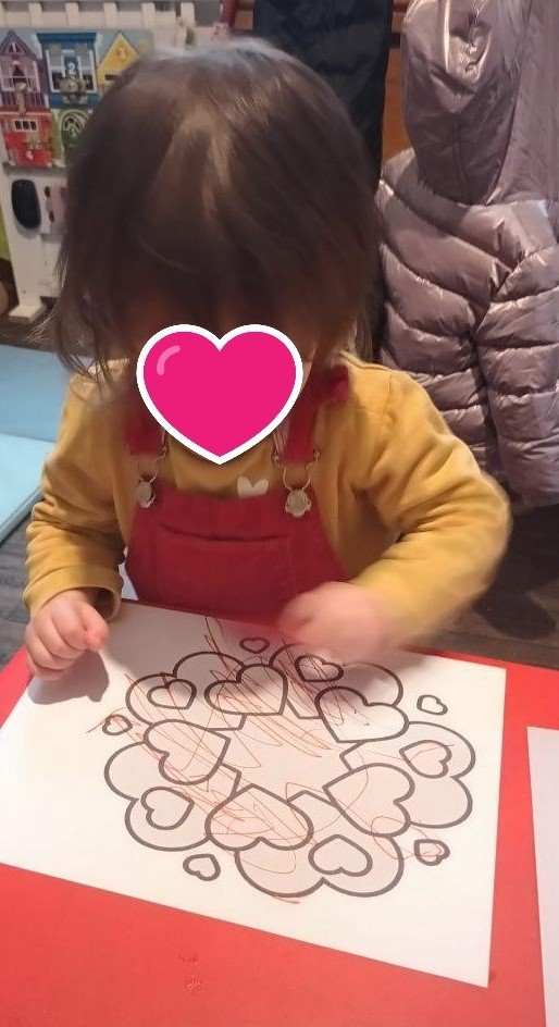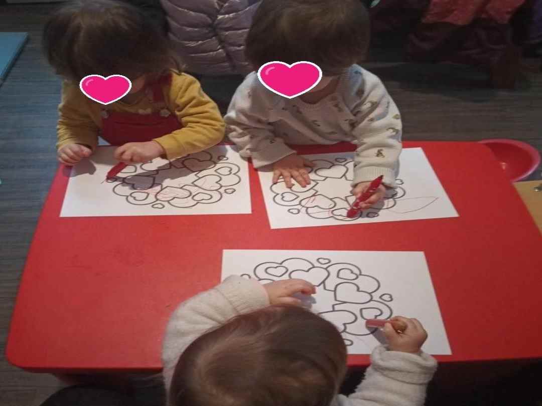 Nous continuons dans le thème de la semaine.. Entre le coloriage d’une jolie couronne et les gommettes, il y a des cœurs partout … Alma, Elisa et Lucas ont joué les artistes.