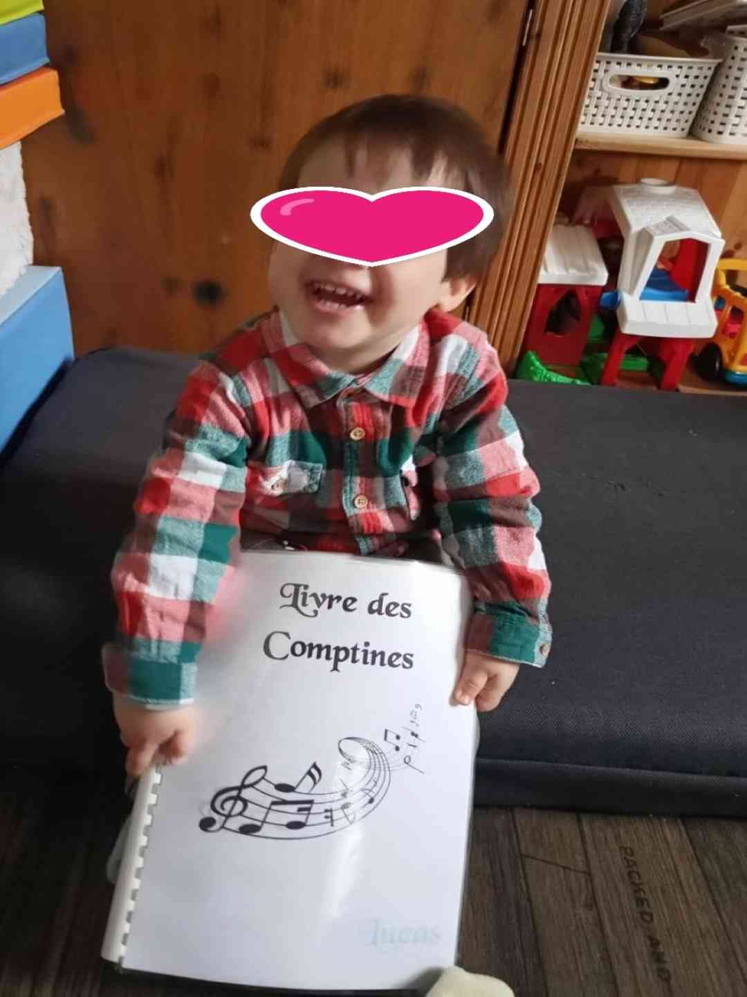 Il a pu apprécier son oeuvre plastifiée et reliée en début de semaine, Il est tout fier de pouvoir chanter en le feuilletant, à chaque image ses paroles et il les connait plutôt bien.