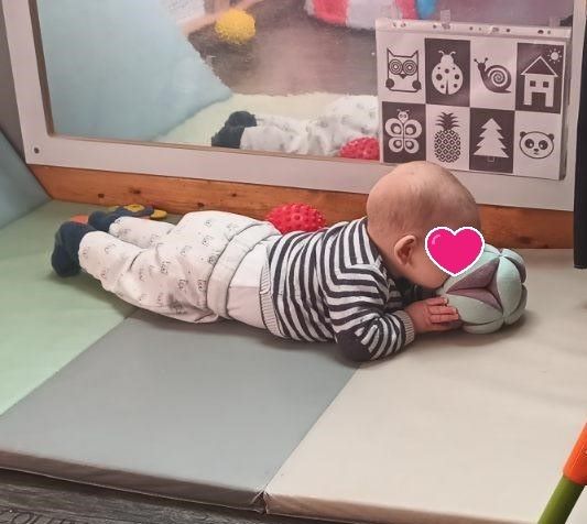 Doucement mais surement Arthur se déplace et sort du Nido pour aller voir les copains… Dans quelques mois, il pourra s’agripper à la barre pour se tenir debout.. Mais laissons le grandir….