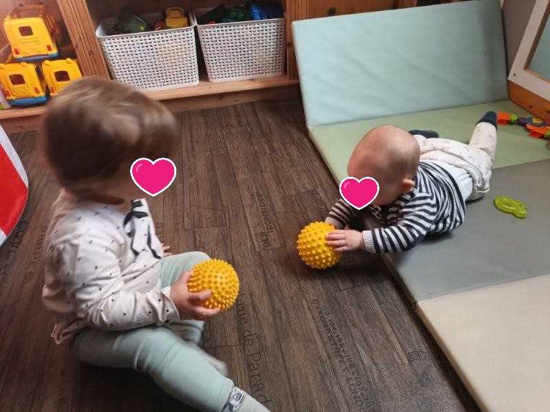 - et le Nido réservé aux plus petits : un cocon qui évolue au fur et à mesure des capacités des « occupants » . Chaque enfant progresse à son rythme en développement moteur. Arthur est arrivé à quelques mois chez Tatylène . Il avait déjà découvert « le recto – verso » . Depuis quelques semaines, il pratique la « toupie » (l’enfant est positionné sur le ventre et tourne « façon horloge » sur lui même.) De jour en jour, il progresse : il arrive à se déplacer un peu aléatoirement (la coordination oeil main se met en place)