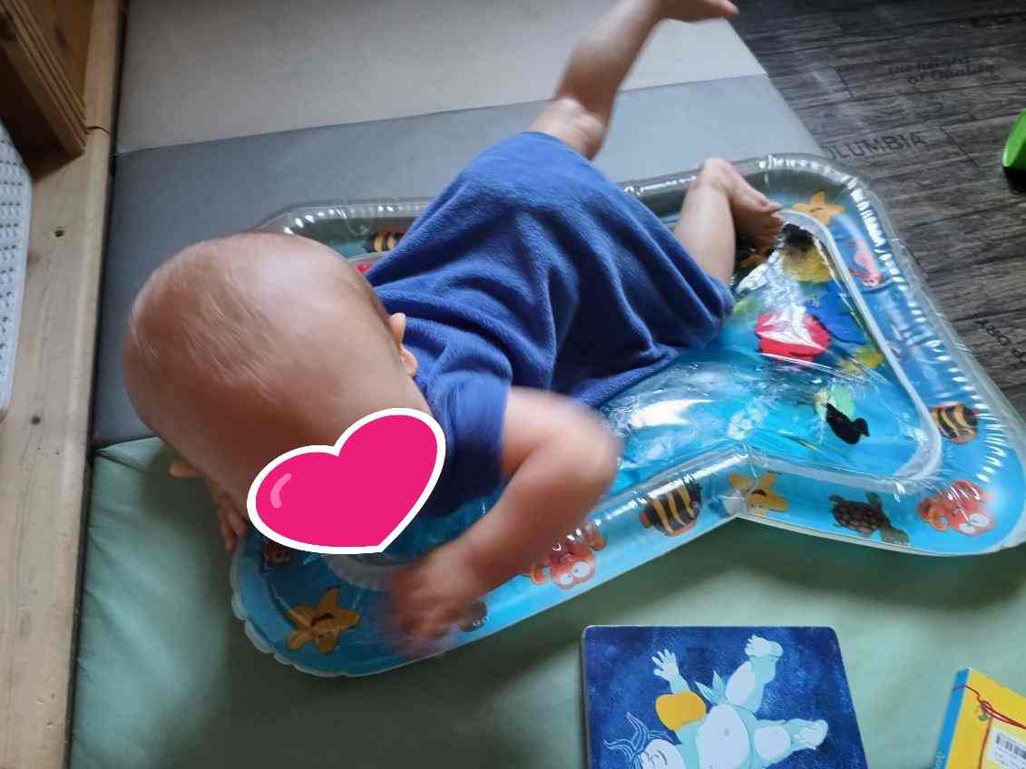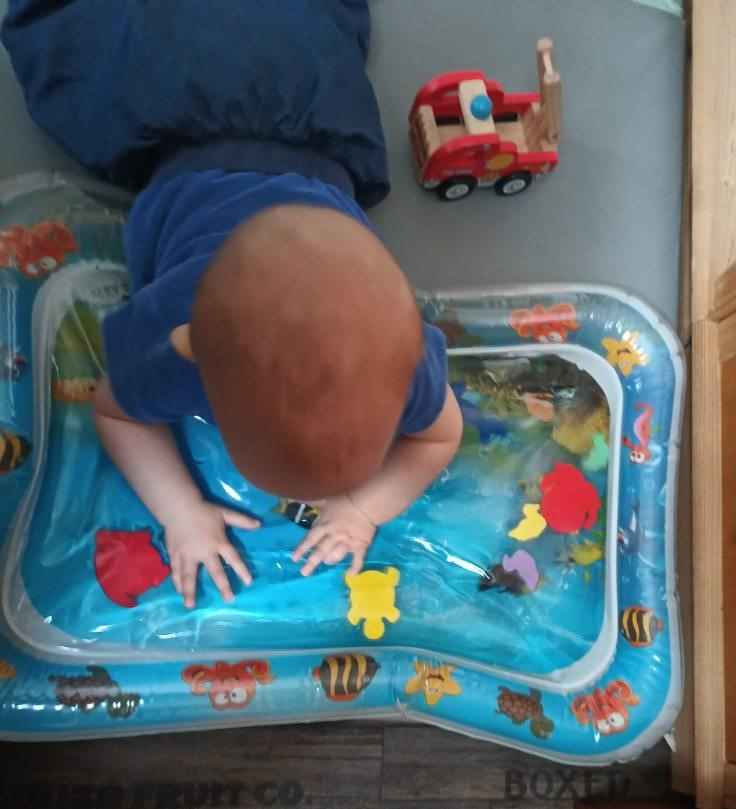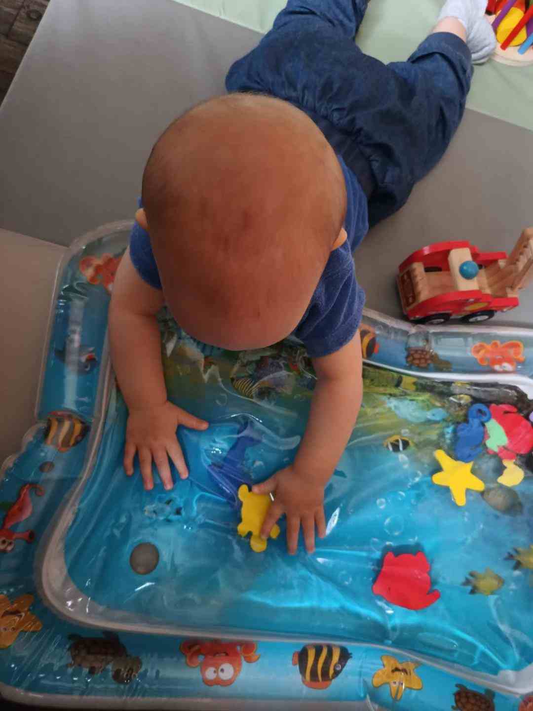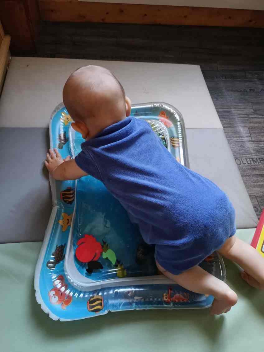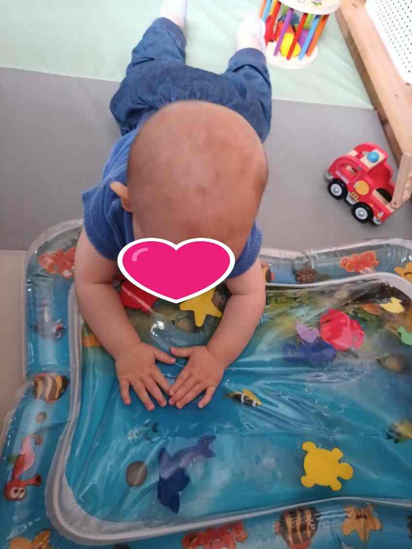 j’ai proposé un curieux tapis à ce jeune homme. Très intrigué, il a d’abord observé puis a touché doucement . Arthur a tenté d’attraper les petits animaux , c’est amusant de faire bouger les poissons et tortue.