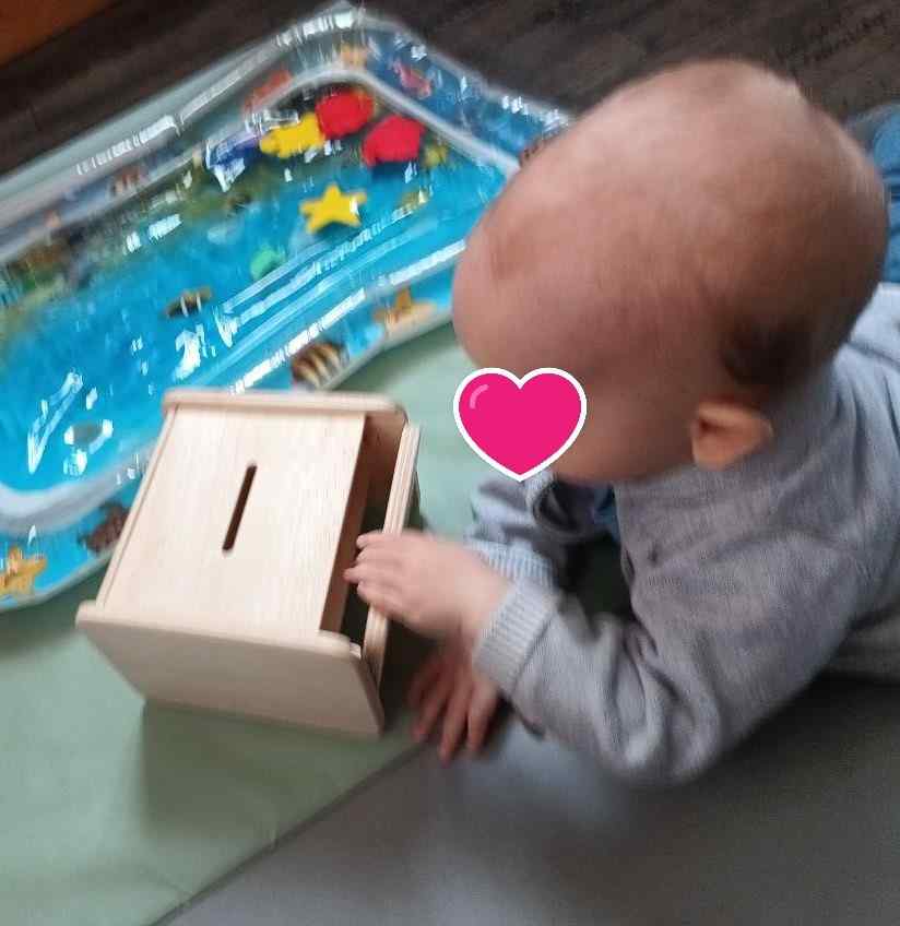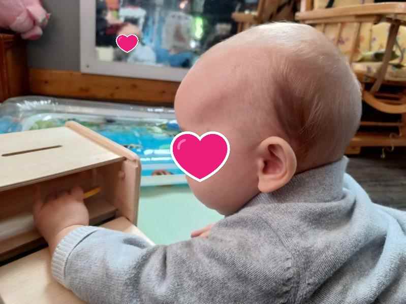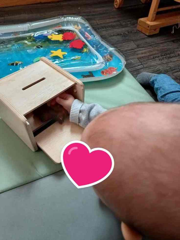 « boite de notion de permanence , elle a pour but de développer sa coordination oeil main, et lui font comprendre l’existence de l’objet même s’il est caché » »