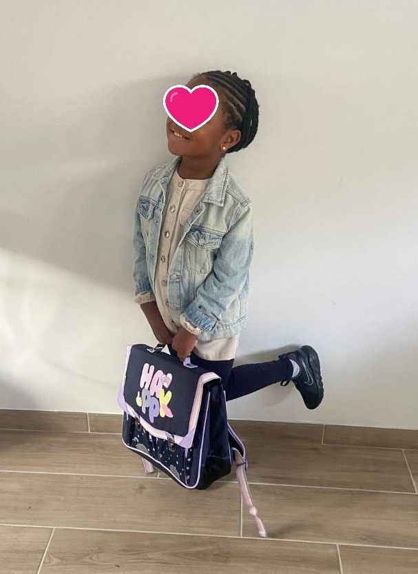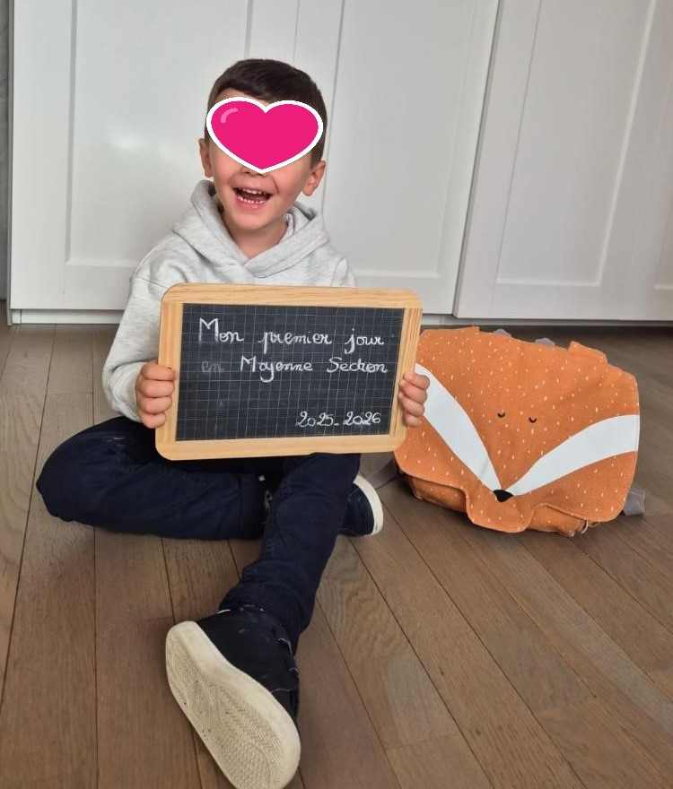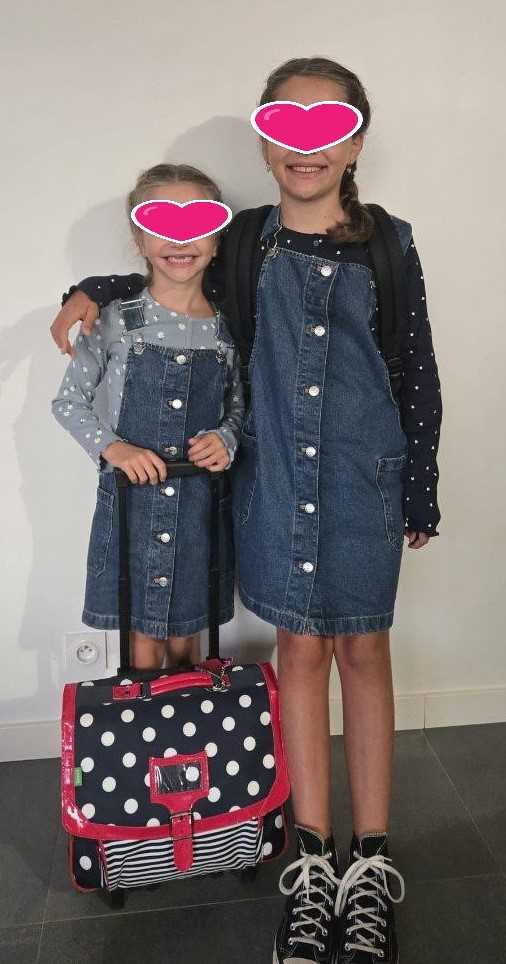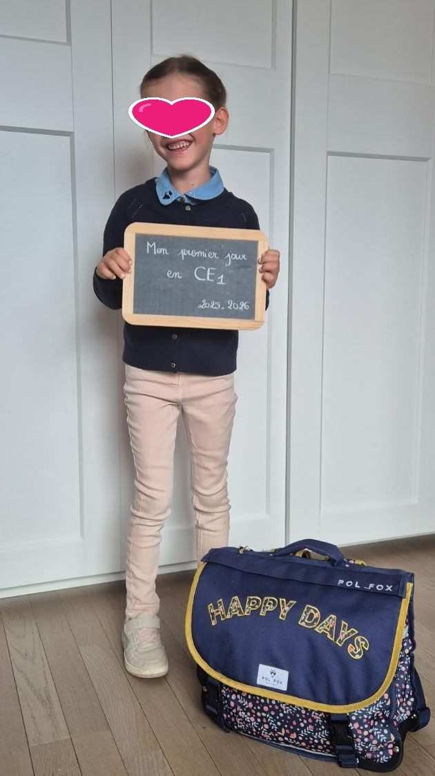 sans oublier Oriane et oui , elle a eu le droit à sa photo de rentrée des classes (et ça dure depuis la petite section. c’est une tradition dans la famille et c’est un plaisir de la voir partagée par les parents)