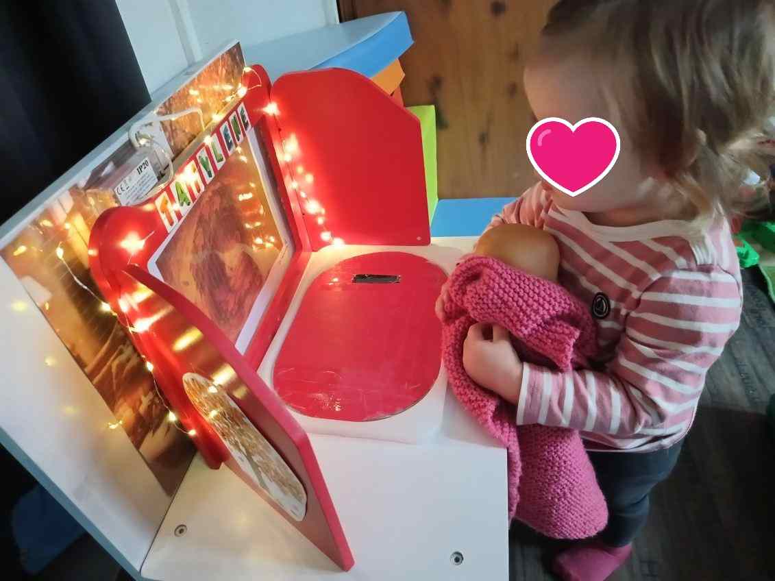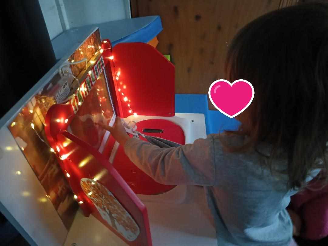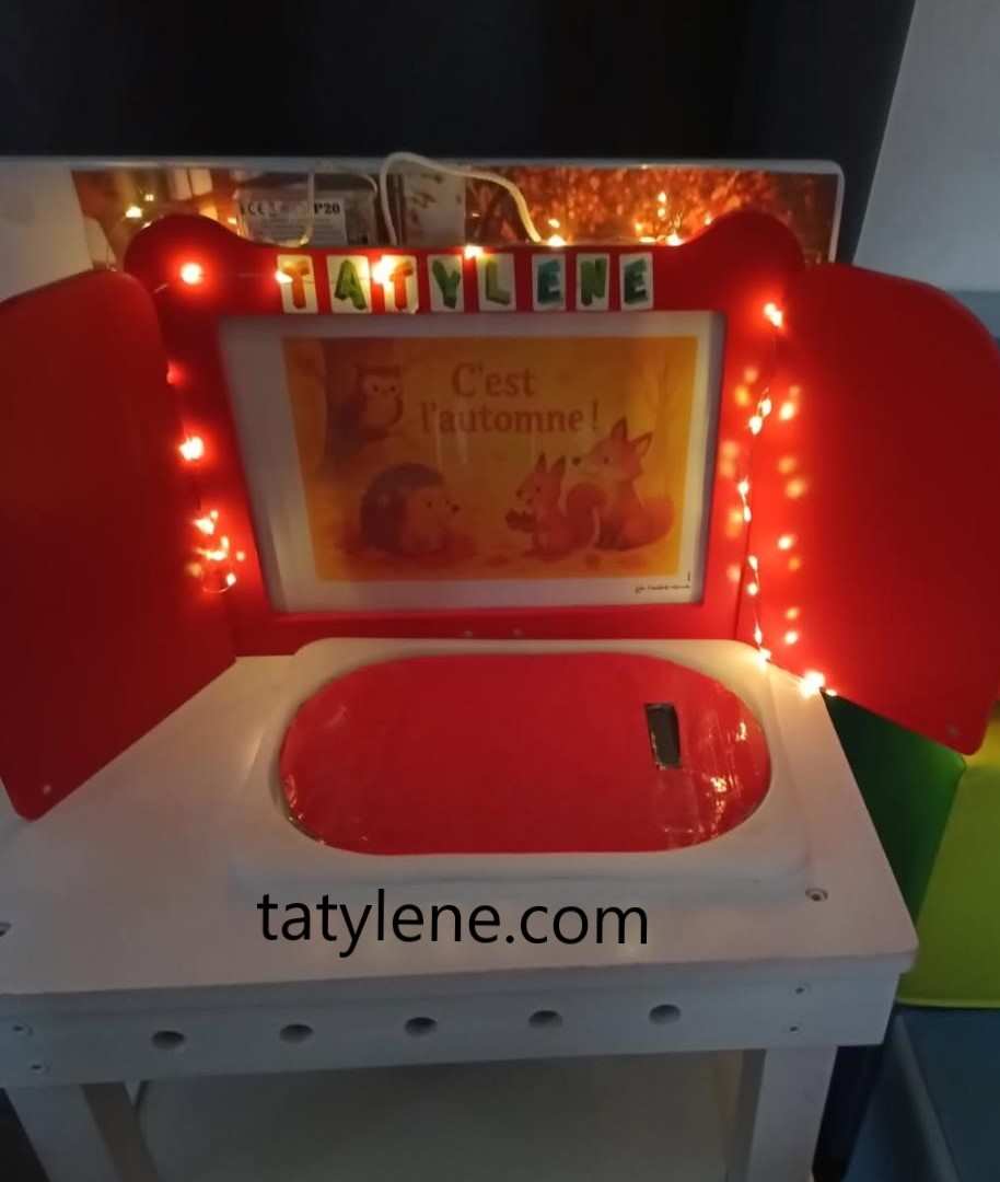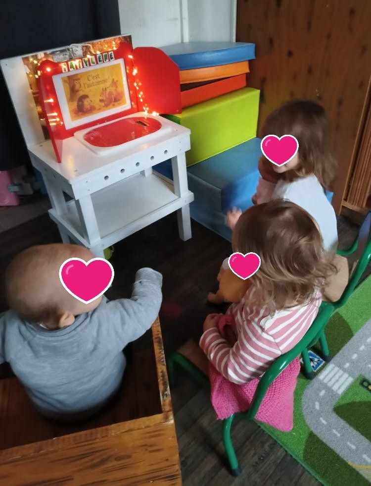 Mardi temps pluvieux , c’est le moment idéal. J’ai même rajouté une lumière pour le côté magique. Nous avons lu deux fois l’histoire (en modifiant les assises 😃, chacun son siège)