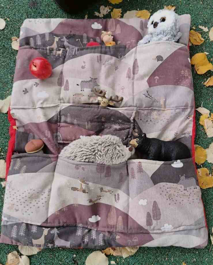 Mr Lapin est venu leur raconter sa balade en forêt. Il a rencontré des animaux l’ours, le grand cerf, l’escargot, l’hérisson . Il a aussi trouvé un champignon et des pommes.