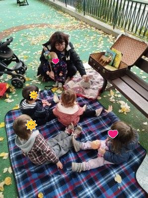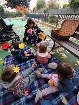 Chaque découverte est accompagnée de sa comptine et parfois d’un livre. Les chansons et les lectures se font à deux voix (merci Valentine) les enfants adorent ! C’est tellement agréable de pouvoir manipuler les peluches et de leur faire des câlins (de plus le vocabulaire se développe)