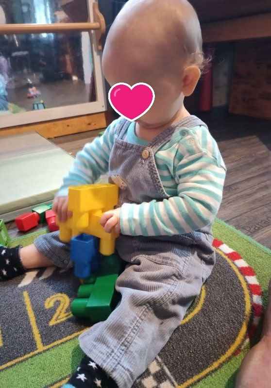 Alma s’amusait à faire des tours quand Arthur a trouvé cela intriguant. Alors il a commencé à prendre un légo puis un deuxième. Quelques essais plus tard, il a compris le principe .. et c’est parti pour une séance de motricité fine.. une belle coordination main œil 😊