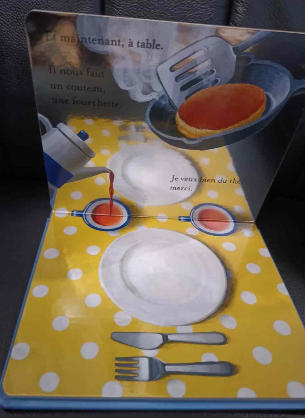 Chaque page est conçue pour se refléter dans celle « miroir » . Les enfants se voient dans le livre, ça leur plait ….