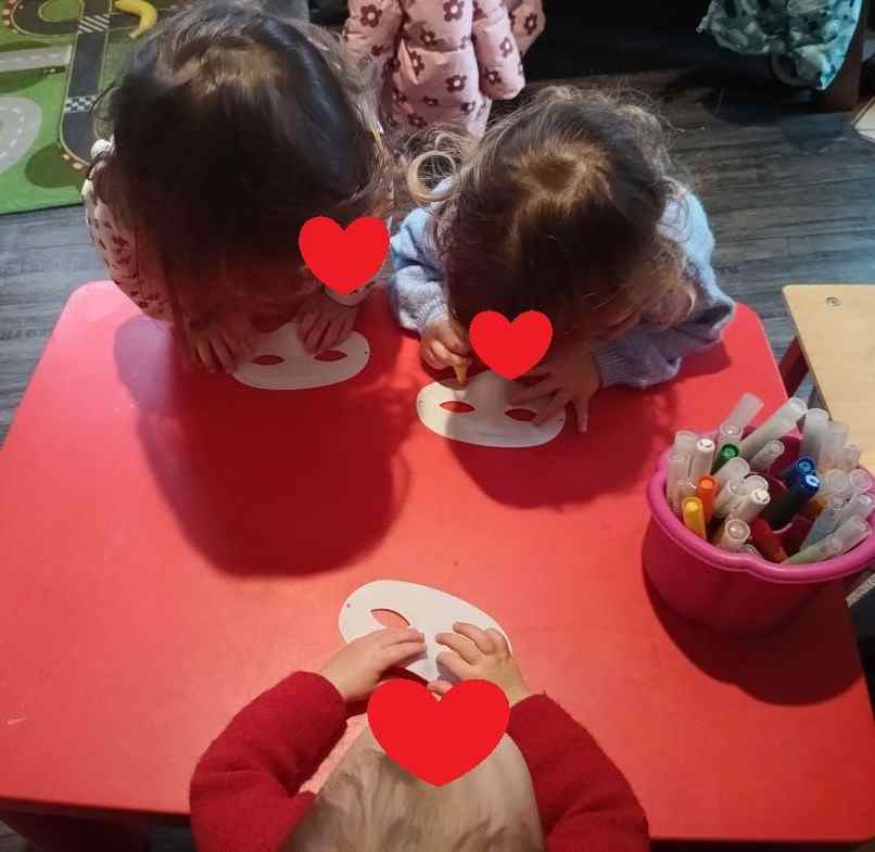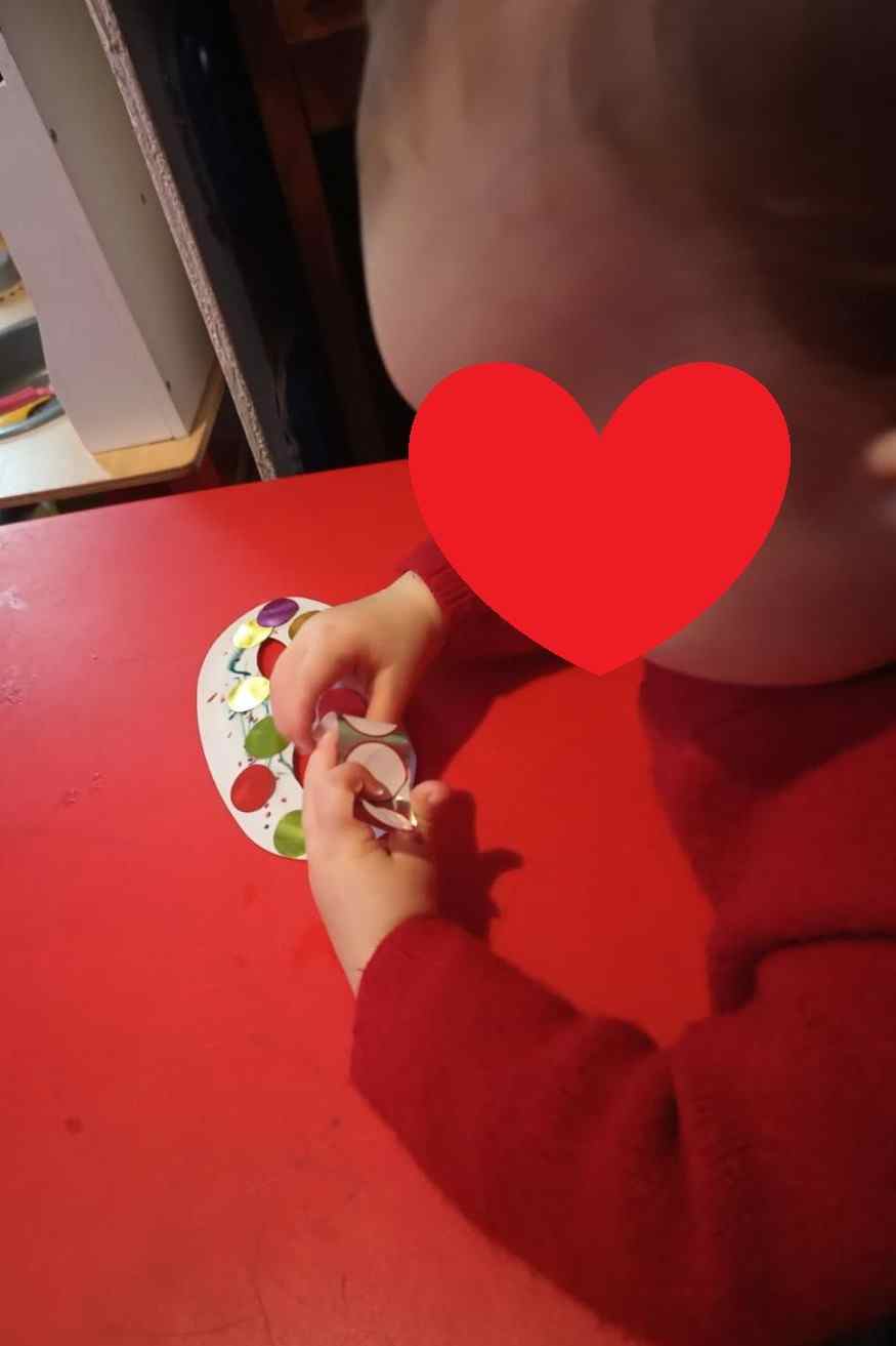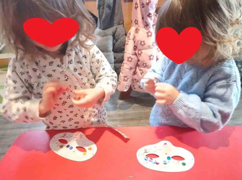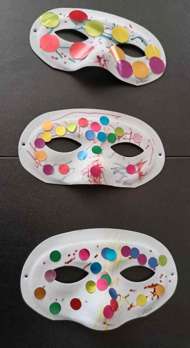 En début de semaine, Alma, Arthur et Elisa ont décoré des masques pour le carnaval. Le benjamin suit dans les activités (j’adapte simplement la taille des gommettes pour le moment mais bientôt ce ne sera plus nécessaire 👌😊)