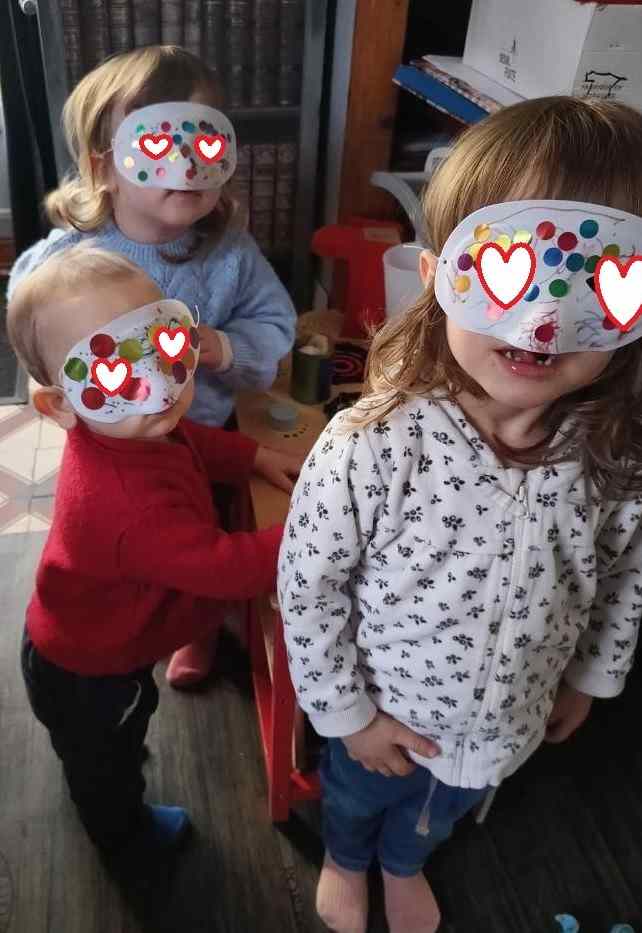 En début de semaine, Alma, Arthur et Elisa ont décoré des masques pour le carnaval. Le benjamin suit dans les activités (j’adapte simplement la taille des gommettes pour le moment mais bientôt ce ne sera plus nécessaire 👌😊)