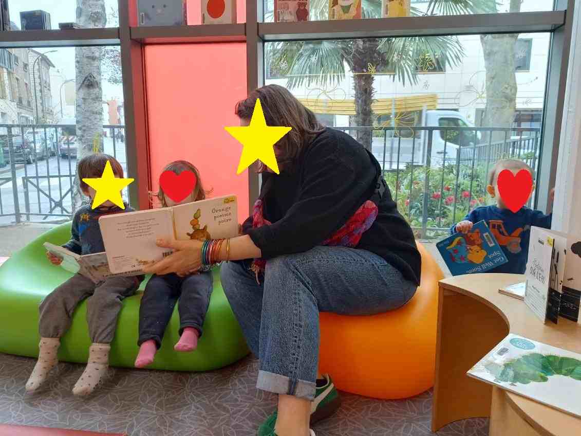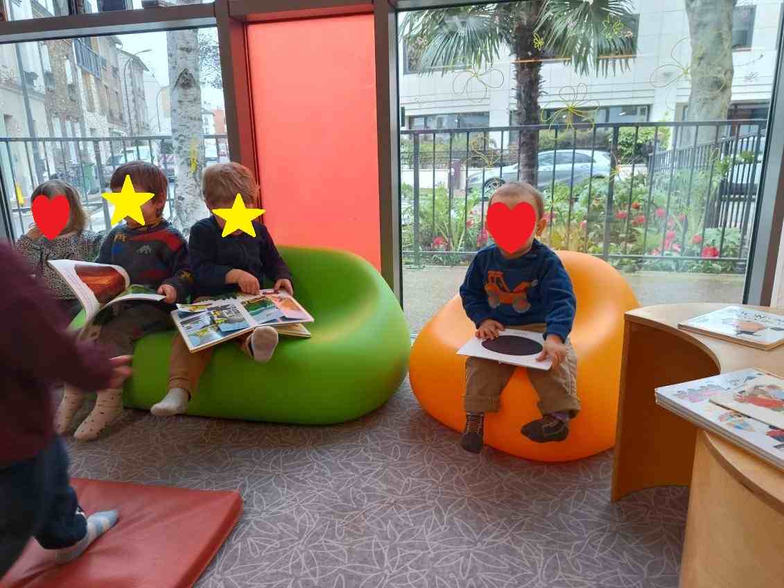 Chacun des enfants a admiré les images, écouté les histoires et tourné de nombreuses pages. Arthur a testé tous les fauteuils mis à disposition, finalement il y a aussi de la motricité dans les salles de lecture..🤣🤣