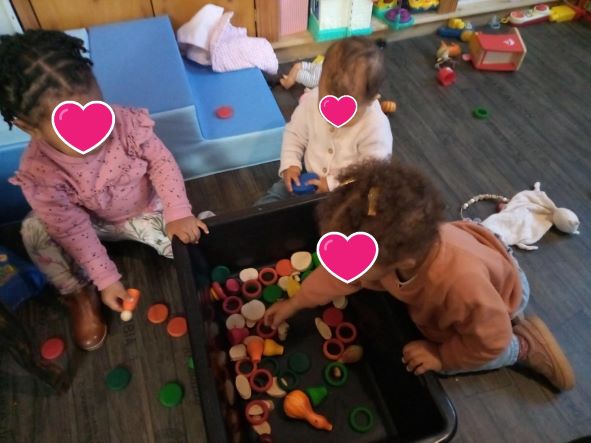 Les trois demoiselles ont découvert le bac. J'ai commencé par l'imagier pour nommer ce que l'on pouvait y trouver : des citrouilles, des hérissons.... Ensuite chacune à leur tour , elles ont pu explorer ... Romane et Taila ont pu classer à leur manière les divers éléments dans les alvéoles Et pendant ce temps la... Lire la Suite →