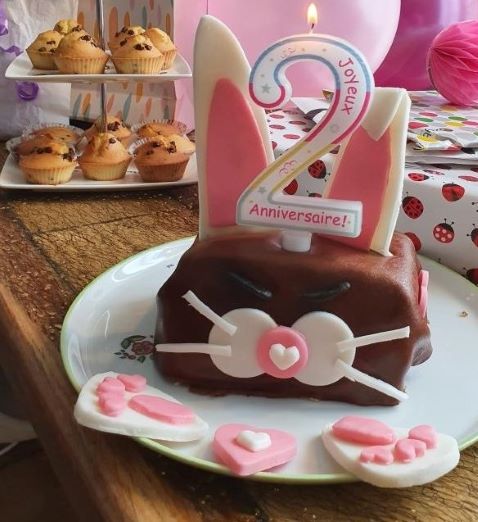 Elisabeth a eu 2 ans le 1 juillet. Mélodie sa maman lui a préparé un magnifique gâteau en forme de lapin. Et comme il en restait nous avons pu en déguster jeudi pour le gouter pour le fêter tous ensemble. c'était un très bon moment MERCI pour ce partage. magique !!!