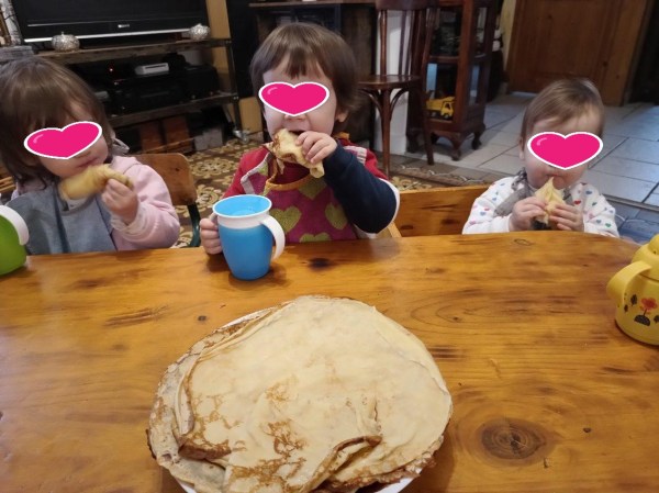 Nous avons fĂȘtĂ© la chandeleur tous ensemble. C'est l'occasion aussi d'apprendre des mots (dans prochain article) mais surtout de se rĂ©galer !!