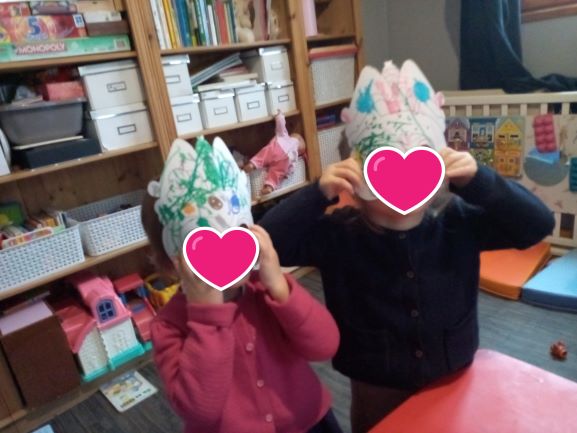 Au programme coloriage des masques pour toutes les 3 .. Chacune mĂȘme Romane a dĂ©corĂ© son masque ..