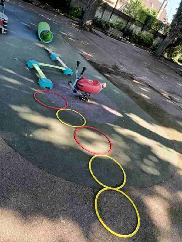 Vendredi on a convenu de se retrouver au parc avec de quoi faire un joli parcours avec ma collègue Valentine (elle est très enjouée quand il s'agit de trouver des idées pour les petits et à nous deux ça cogite !!) D'abord découvrir les cerceaux.Qu'est ce que l'on peut en faire.? Se mettre dedans ?... Lire la Suite →
