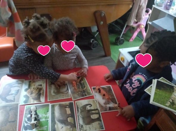 Nous continuons par le memory et les lotos , de supers moments.. Taila et Romane sont très concentrées...Thaissa a préféré aller jouer avec les légos .