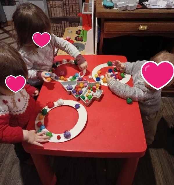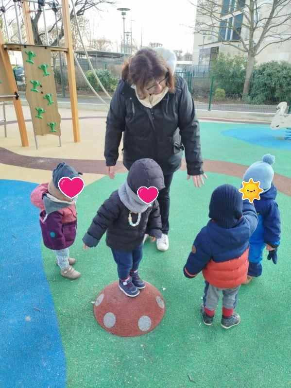 Nous sortons quasiment tous les jours (sauf intempéries) parc, médiathèque, relais , et autres sorties (bois, expositions) Je suis toujours dans la recherche d’endroits adaptés pour les enfants accueillis (si vous avez des idées, je suis preneuse ) Nous profitons parfois de l’allée et du jardin pour prendre l’air et s’amuser avec trotteur , poussette et jeux de quilles .